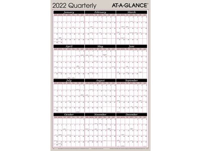 2022 At A Glance 36 X 24 Yearly Calendar Quarterly Multicolor A123 22 Quill Com